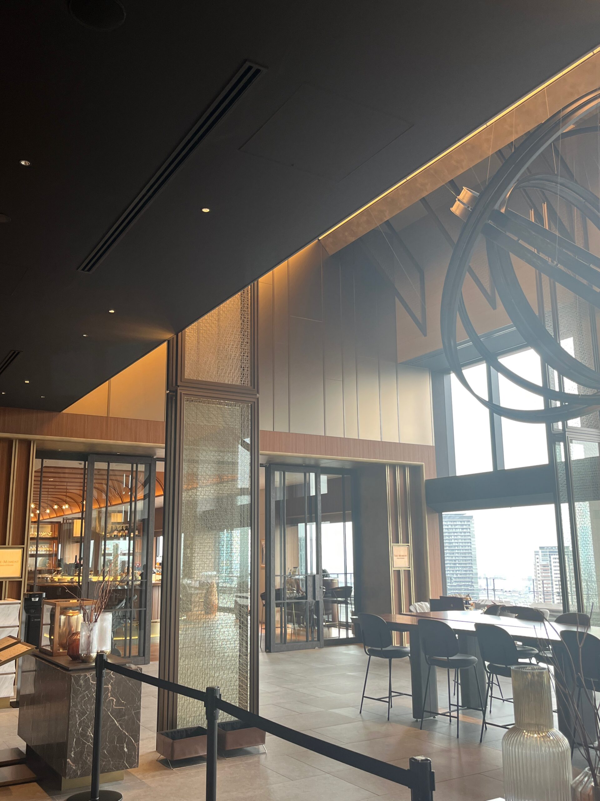 朝食は、通常だと大人9,000円、子供(4歳~12歳)4,500円と五つ星ホテルを超える価格設定のブッフェスタイル。29階(ロビー階)にあるフレンチレストラン「THE-MOMENT GRILL&DINING」で朝食をいただきました。